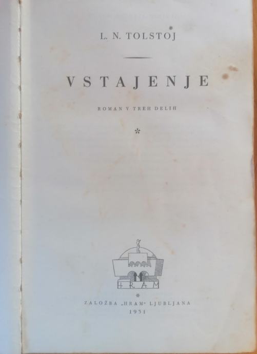 Prodam lepo ohranjen roman Vstajenje pisatelja Leva Nikolajeviča Tolstoja.