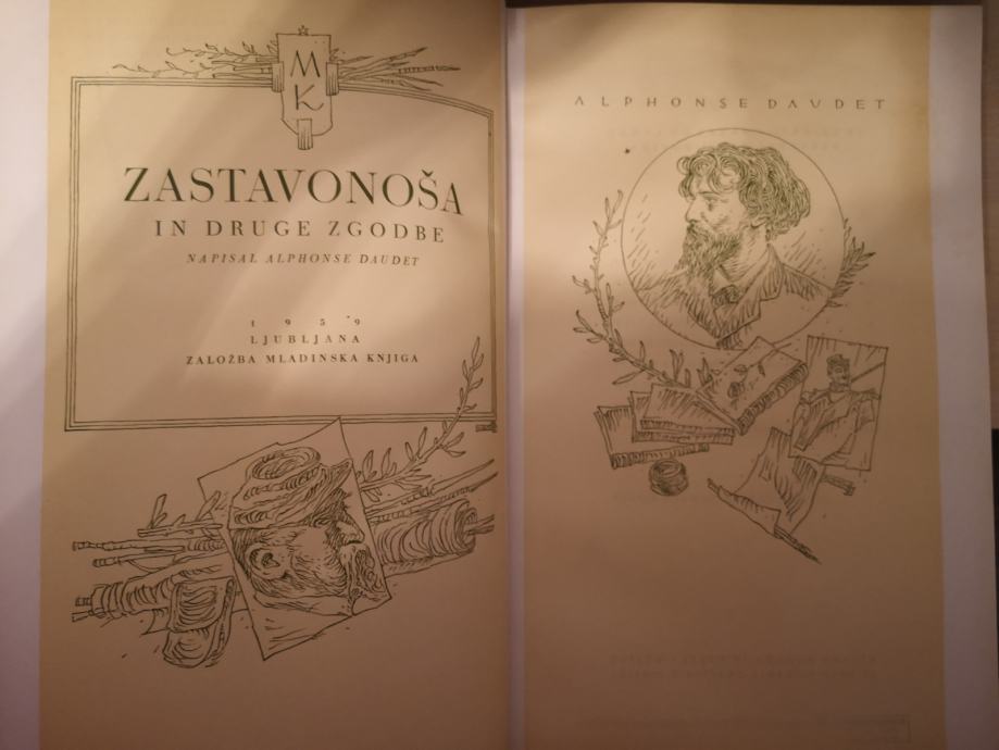 Naslov Zastavonoša in druge zgodbe / napisal Alphonse Daudet ; [prevedel Karel Dobida ; risana podoba in oblika knjige je delo slikarja-grafika E. Justina]
