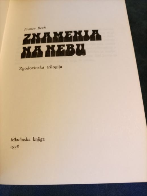 Znamenja na nebu,avtor France Bevk,zgodovinska trilogija,mladinska knjiga 1978 letnik, knjiga ima 578 strani, pošljem po pošti ali osebni prevzem.knjiga je v zaboju pod zaporedno številko 31.