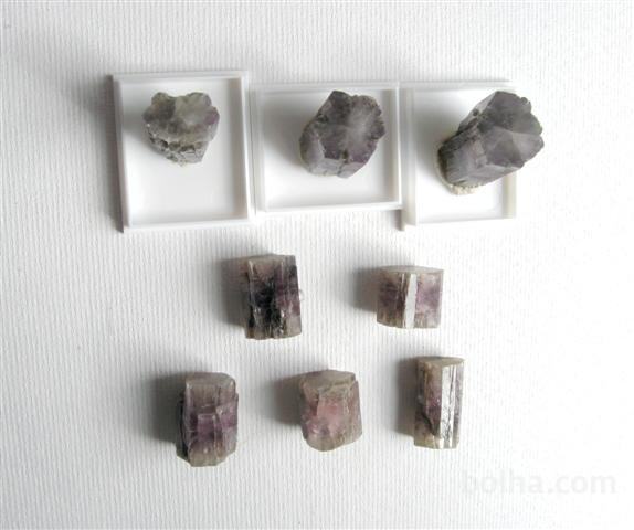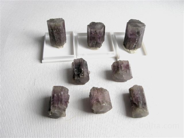 Posamezni kristali, obojestransko zaključeni aragonitni ciklični dvojčki (t.i.trojčki). So deloma vijolično obarvani ter prozorni do prosojni. Nahajlišče Minglanilla,Cuenca, Castile-La Mancha, Španija. Velikost kristalov od 2 do 3 cm. Zelo dobra kvaliteta.