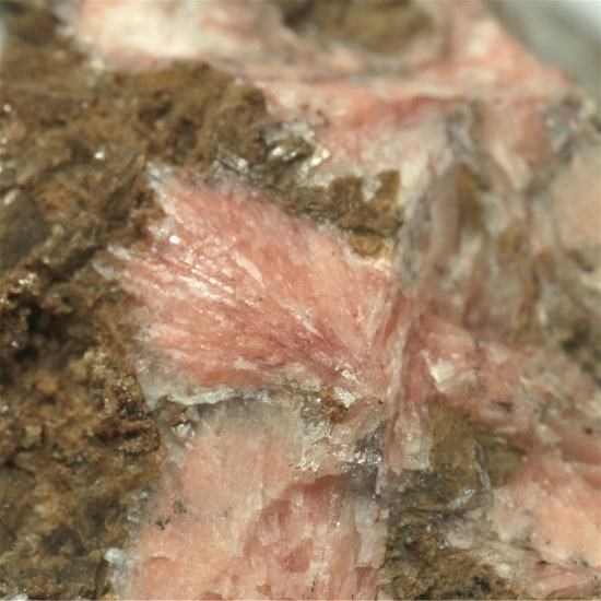 Manganokalcit na peščenjaku. Nahajališče Becke-Oese Quarry, Menden, Iserlohn, Arnsberg, Nemčija. Velikost primerka 8 × 11 × 3 cm. Starejši primerek.