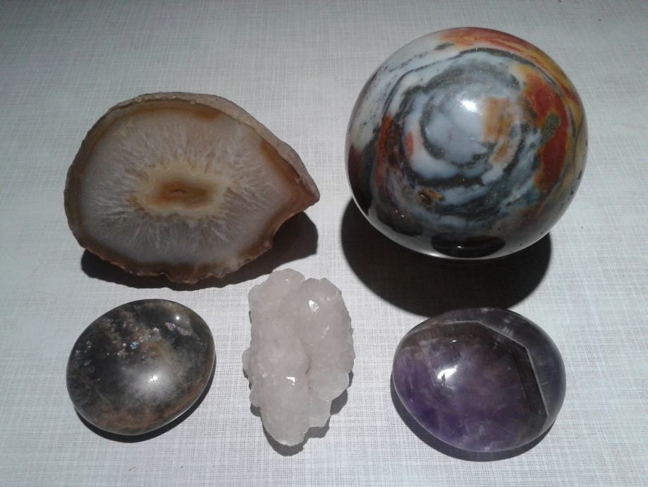 Akvamarin,Angelit,Citrin,Botswana Ahat,Fluorit,Mačje in Tigrovo oko,Heliotrop,Dimni kremen,Mahovni Ahat,Ametrin,Kamena strela,Smaragd,Rubin,Bronzit,Safir,Flint,srček Rodonit.