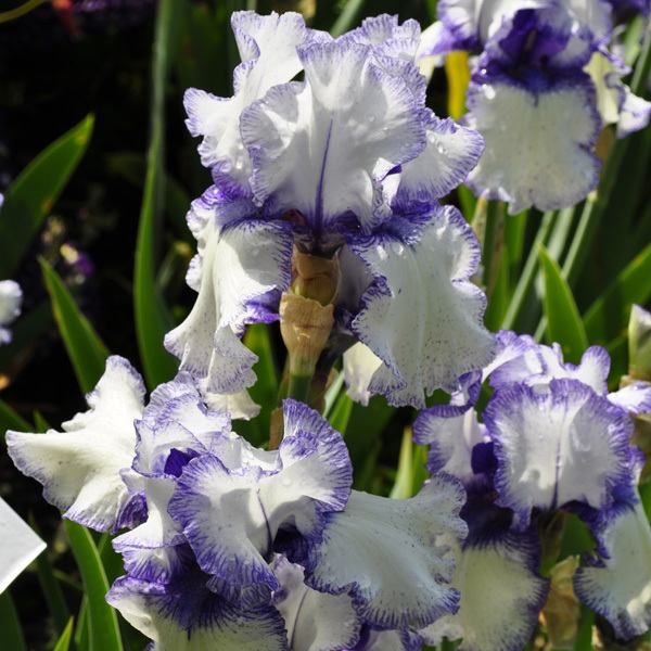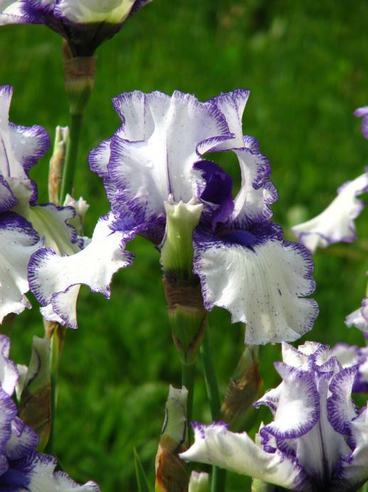Visoka bradata perunika (Iris germanica) 'Orinoco Flow' je nižje rasti (doseže višino okrog 65 cm). Ima rahlo dišeče cvetove z izrazito valovitim robom v belo-vijolični kombinaciji. Sorta je prejela nagrado British Dykes Medal. Žlahtnitelj Bartlett (VB). Več informacij o sorti: https://wiki.irises.org/Bb/BbOrinocoFlow