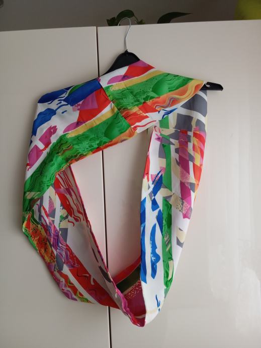 Lepo ohranjen, velikost je 140cm, šal je v enem kosu (okrogel), ne menjam, ptt ni vključena v ceno