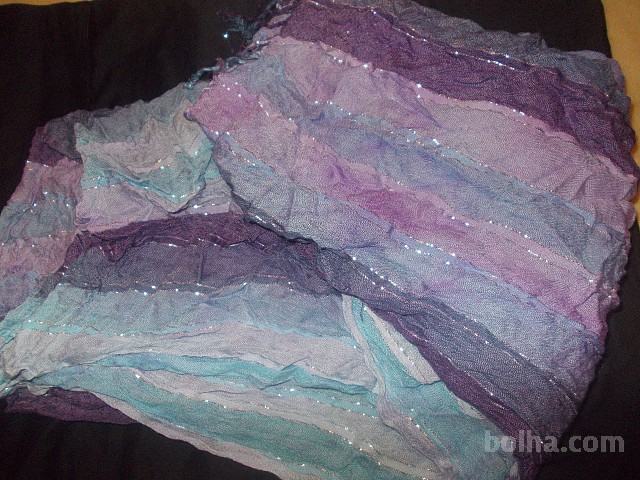 Barve se prelivajo vijola- modro in s srebrnimi nitmi. Cena 7ev-ptt v ceni.