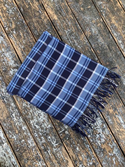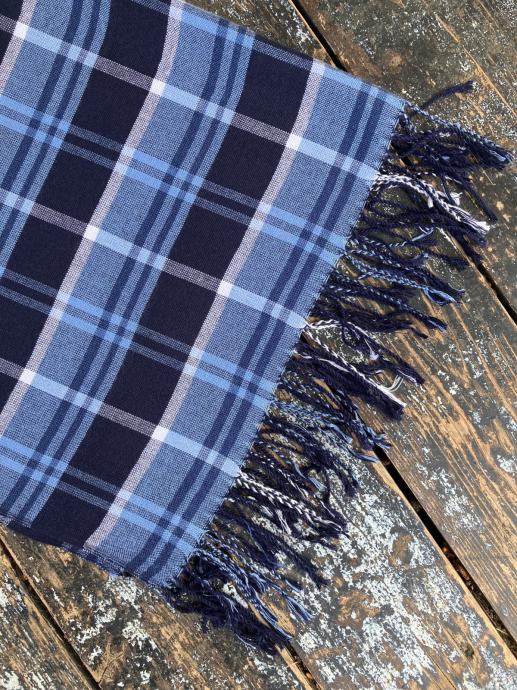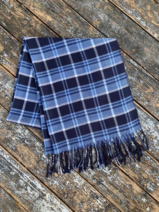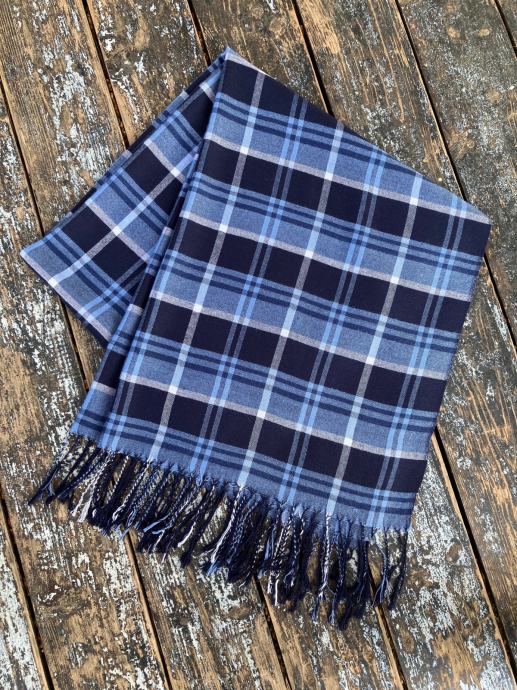 Vzorec je veliki karo, sestavljen iz različnih odtenkov modre in bele.