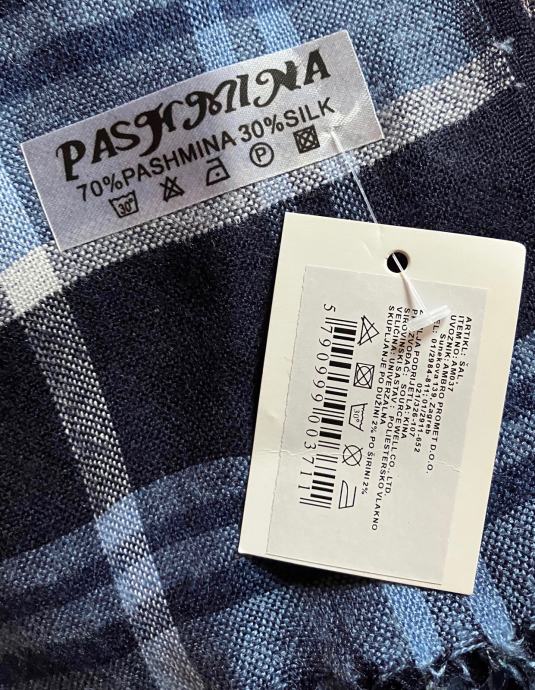 Pašmina je izjemno fina, mehka in topla volna, pridobljena iz poddlake himalajskih koz (Chyangra), ki žive na visoki nadmorski višini in imajo vlakna, tanjša od 15 mikronov, kar jih uvršča med najfinejši kašmir. Tradicionalno se ročno tke in je znana po izjemni mehkobi, toplini (toplejša pozimi, hladnejša poleti) in naravnih lastnostih, pogosto pa se meša tudi s svilo za dodatno nežnost.