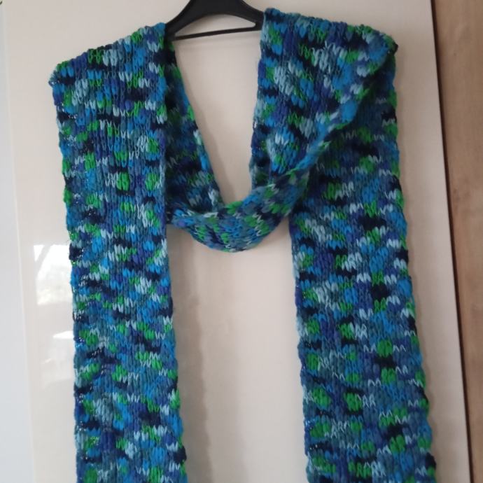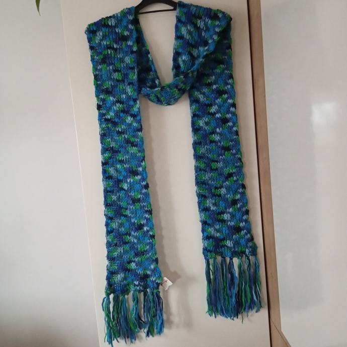 Nov z etiketo, ročno pleten, dolg, dolžina je 260cm, širina je 20cm, ne menjam, ptt ni vključena v ceno