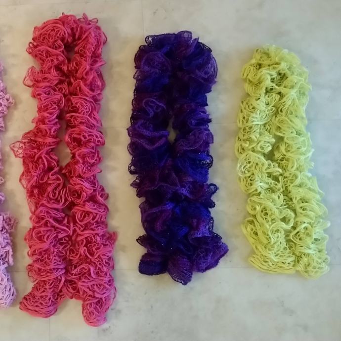 Več pletenih šalov različnih barv. Ročna izdelava. Dobro ohranjeni, saj so zelo malo rabljeni.