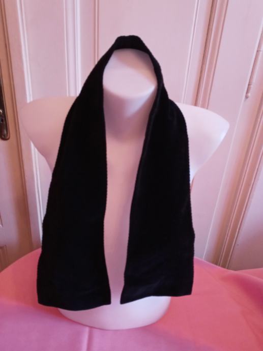VINTAGE PODLOŽEN ŠAL OVRATNIK, ČRNE BARVE, REBRAST ŽAMET. ŠAL JE DOLG 95 cm, ŠIROK 12 cm.