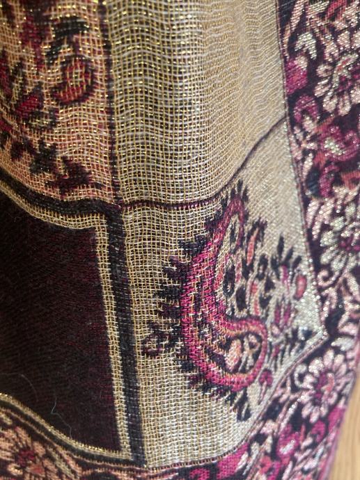 Prodam ženski šal, v čudovitem, lesketajočem se vzorcu. Mere:66 cmx180cm. Šal je nov. V ceni je že poštnina.