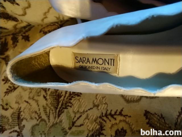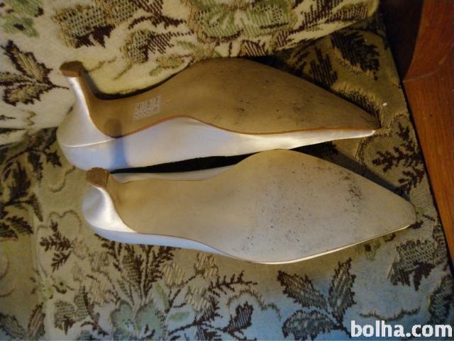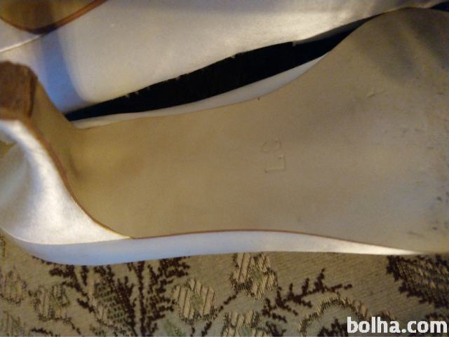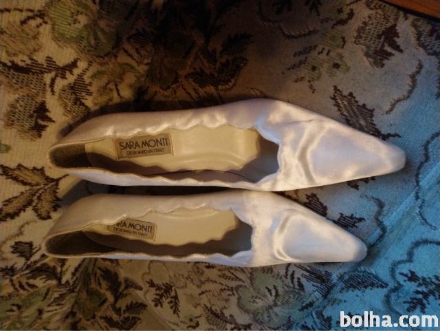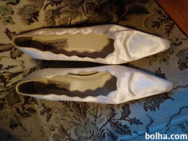 Prodam bele poročne čevlje št.37, višina pete cca 7cm. Čevlji so lepi in malo nošeni (le za poroko). Čevlji so znamke SARA MONITI Italijanske. Zraven podarim še belo torbico in belo denarnico, slike torbice in denarnice lahko pošljem na ZS.