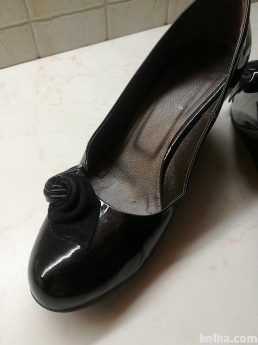 Prodam lepe črne lakaste salonarje, znamke Bata, številka 39. Salonarji imajo polno peto, visoko 7cm.