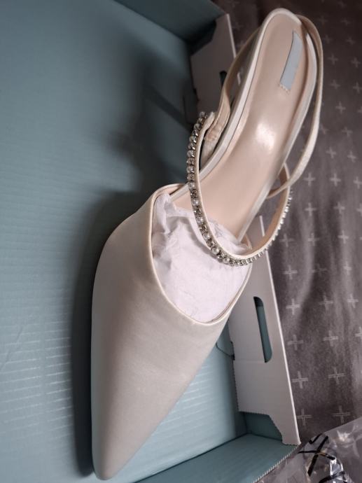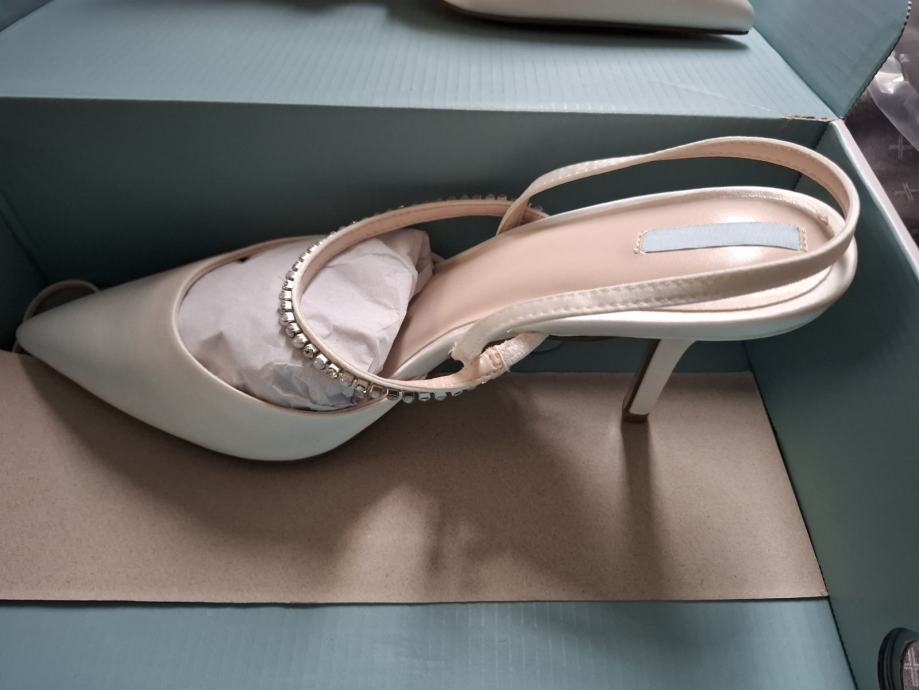 Prodam elegantne ženske čevlje NEXT iz serije Next by pridal, ki so primerni za slavnostne dogodke, kot so poroke, maturantski plesi, obletnice in podobno. Čevlji so povsem novi, nikoli nošeni, pravzaprav nikoli niti preizkušeni. Kot je razvidno iz slik, so čevlji še v original emablaži.