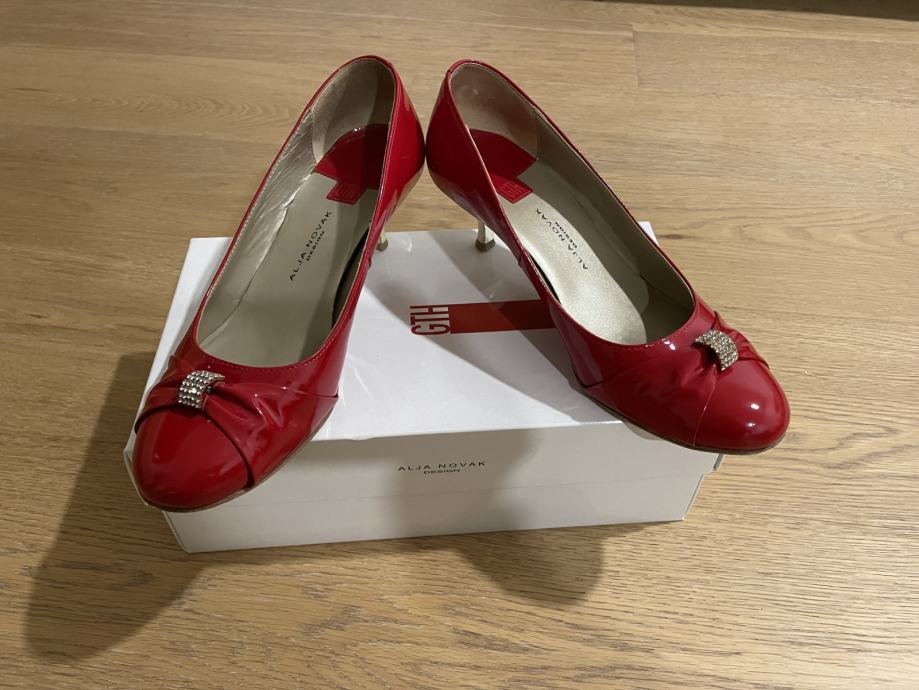 Prodam malo rabljene svečane salonarje GTH ALJA NOVAK DESIGN v lakasto rdeči barvi, velikosti 5 1/2 oz. 38,5, višina pete 5 cm.