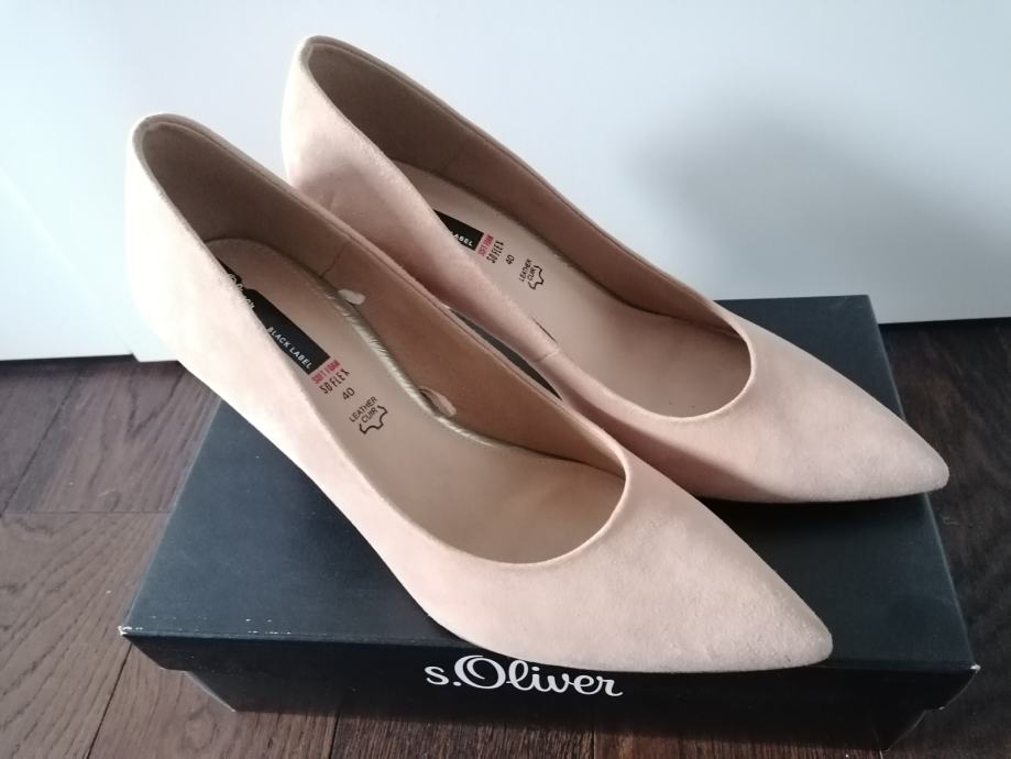 Salonarji v nežni roza barvi, višina pete 8 cm. Mehka, tekstilna površina v stilu semiša. Zelo udobni, ker so podplati oblazinjeni. Rabljeni samo dvakrat (so mi preveliki).