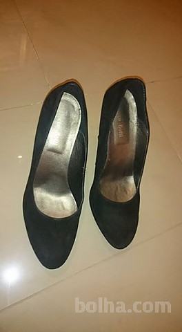 Črni plato salonarji, usnjeni (1x obuti), minimalno poškodovana petka - se ne vidi 15 EUR