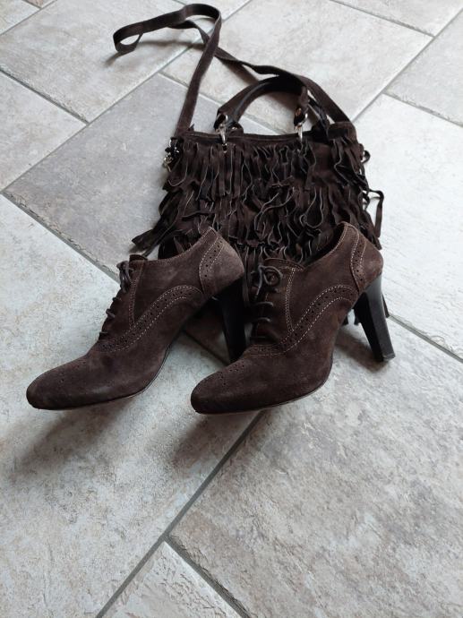 Prodam zelo lepo ohranjene semiš rjave čevlje in manjšo semiš tirbico ( 1 x uporabljena, praktično nova, brez sledi nošenja).