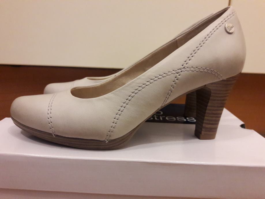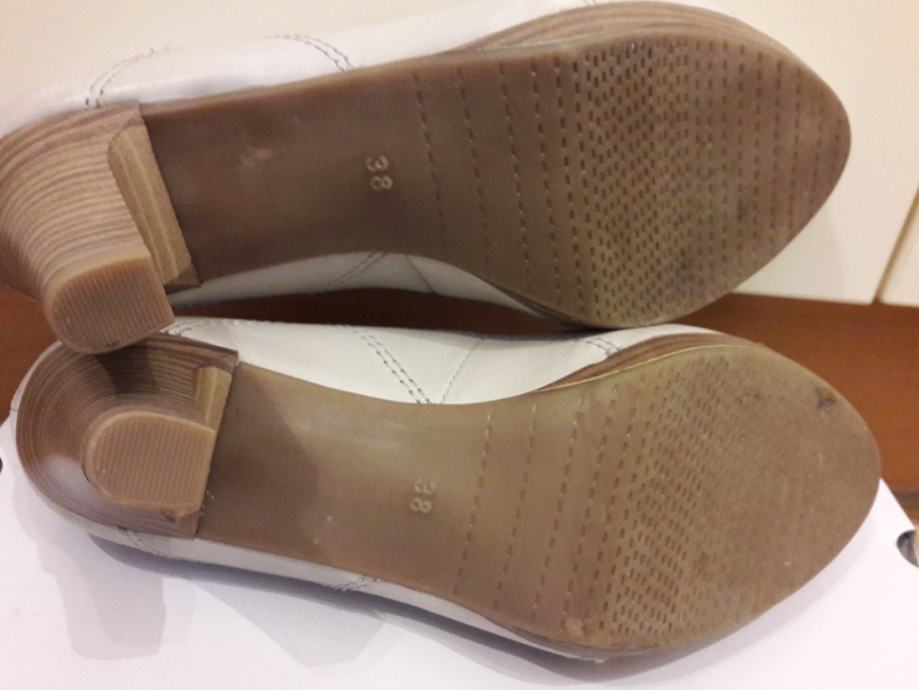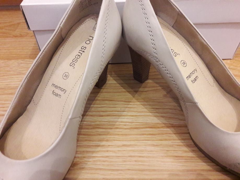 bež usnjeni salonarji, notranji vložek usnje, vmesni podplat iz spominske pene, zunanji podplat iz gume. 1x obute, se mi sezuvajo. drugače zelo udobne.