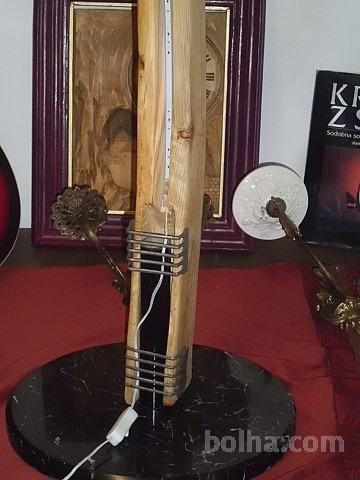 Lesena unikatna ( starinski vintage izgled ) LUČ. lučka na marmornem podstavku. Višina same luči 83 cm, premer marmornega masivnega podstavka pa 37 cm.