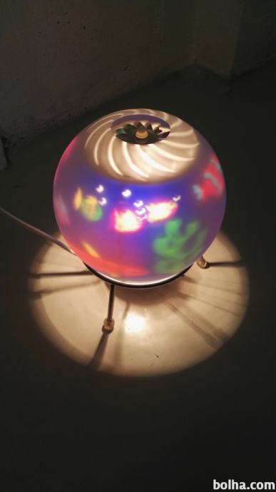 Ambientalna, vrteča, namizna, otroška svetilka, višine 25 cm. Ko se zrak v bučki segreje, se začne notranjost svetilke vrteti in ustvarja prijetne sence. Oglejte si video posnetek.