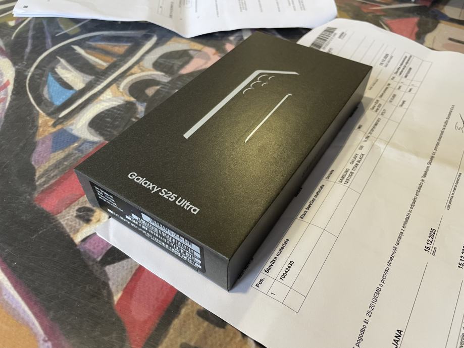Prodam popolnoma nov, zapakiran, Samsung S25 Ultra 512gb, titanium black.