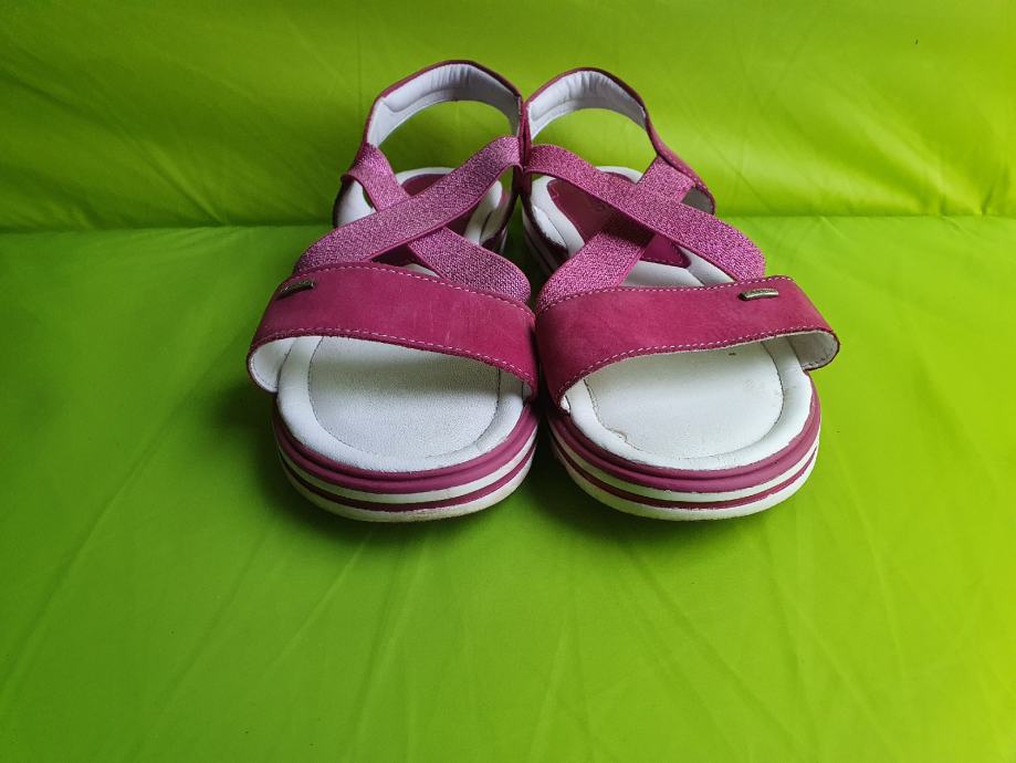 Prodam zelo lepo ohranjene, malo nošene dekliške otroške sandale. Barva je roza (mat usnje), križni paščki so bleščeči elastični, obuvanje brez zapenjanja. Zelo so udobni zaradi elastike.