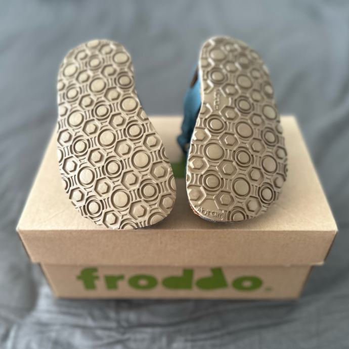 Prodamo bosonoge sandale Froddo Flexi Avi, številka 21, v modro-jeans barvi. Sandali so bili nošeni le pri enem otroku in izključno v vozičku, zato so kot novi, brez vidnih znakov uporabe. Zelo mehki, zračni in udobni – odlični za prve korake ali občutljiva stopala.