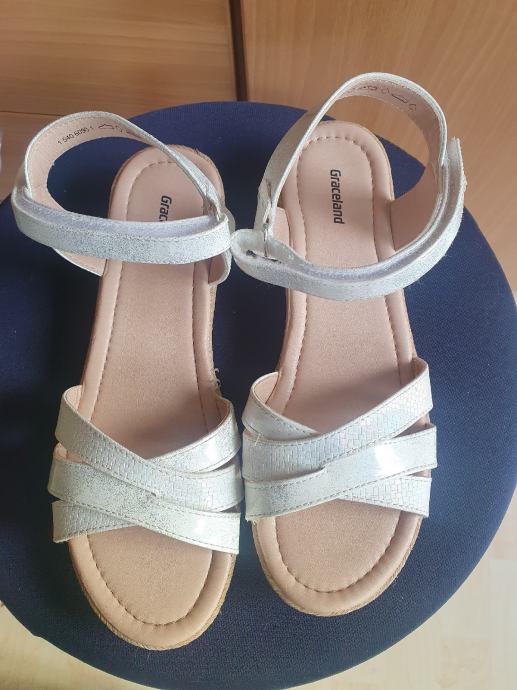 Prodam brezhibno ohranjene, malo nošene dekliške otroške sandale št. 37. So kot nove, saj so bile obute le 1× za bratovo valeto - se vidi iz slike podplatov. Barva je perl - srebrna, prepleteni paščki.