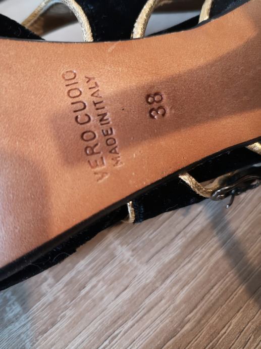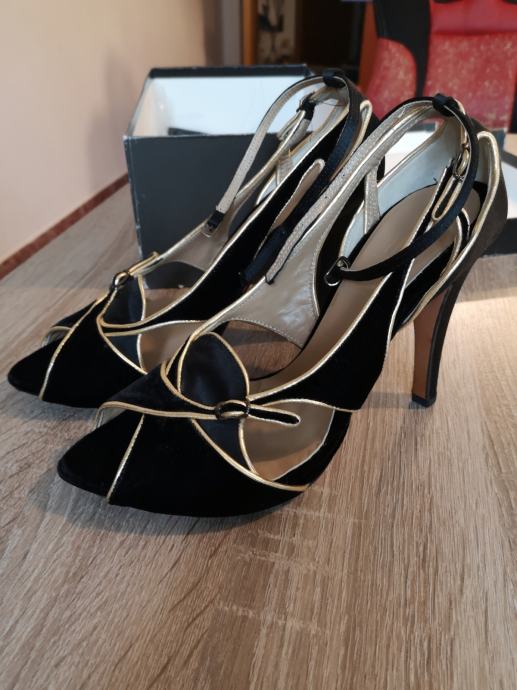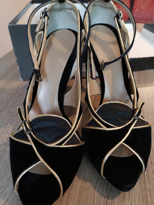 Sandali so z zlato obrobo, primerni za svečane priložnosti.