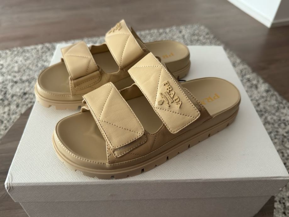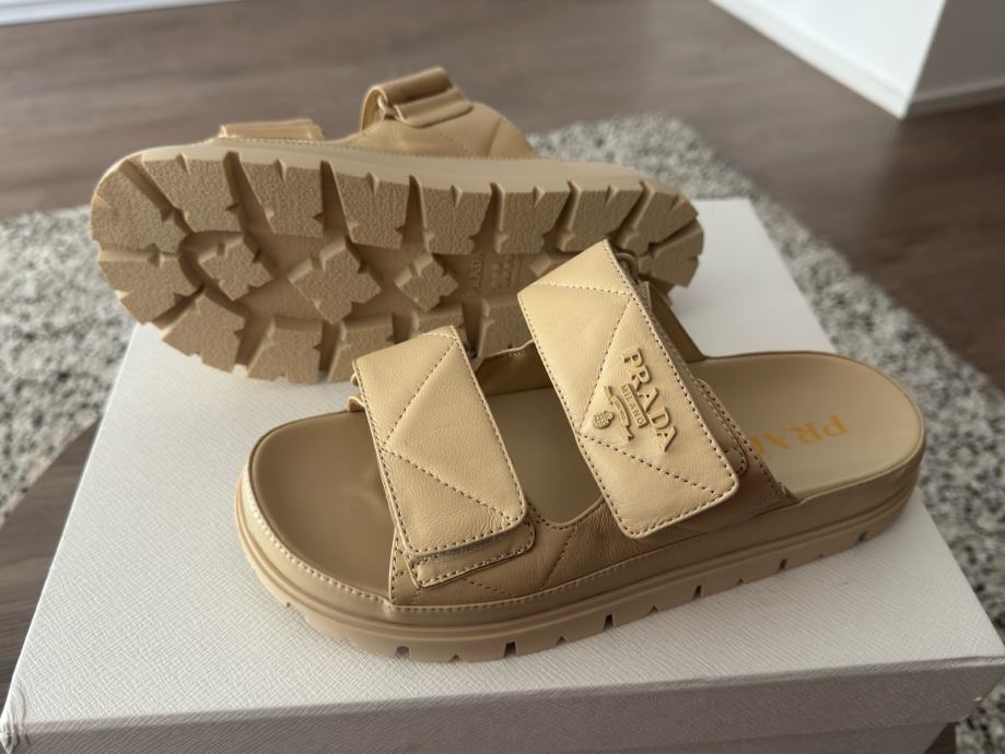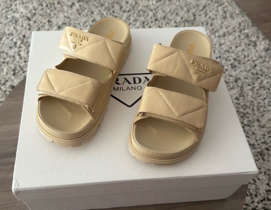 Novi, usnjeni sandali znamke Prada Milano. So velikosti Eu 39. Osebni prevzem v Ljubljani ali pošljem po pošti. Pokličite na 030 791 949.