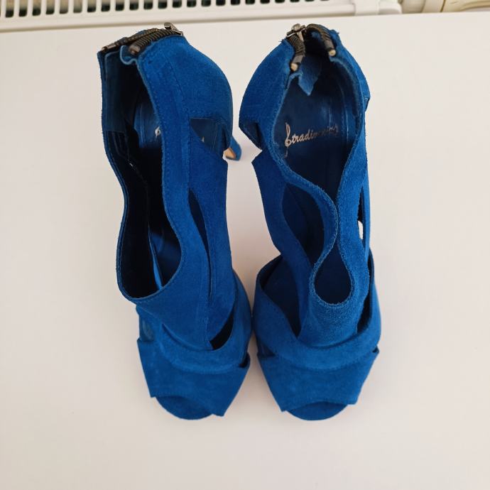 2x obuti kraljevo modri sandali z visoko peto, semiš, št. 36, zelo lepo ohranjeni.