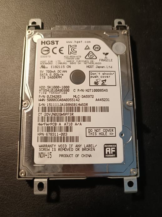 2,5 Sata trdi disk, zelo malo v uporabi, saj je bil nameščen v prenosnem računalniku, ki je bil le doma, kot namizni računalnik, pa še to malo časa, saj že v službi preživimo preveč časa za računalniki.