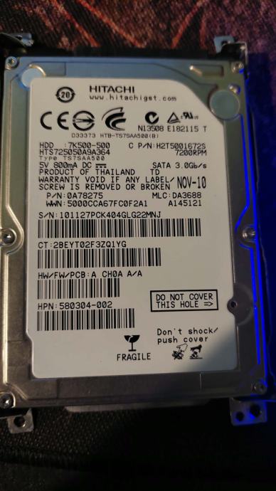 Model trdega SATA diska razviden na sliki, testiran, delujoč, uporabljan v prenosniku.