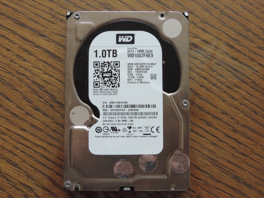 Zmogljiv trdi disk priznanega proizvajalca Western Digital z možnostjo shranjevanja do 1 TB podatkov na SATA III vodilu in s hitrostjo vrtenja 7200 obratov na minuto.