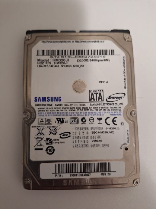 Prodam Samsung Sata Disk 320GB 2,5". Cena je 8€. Telefonska številka za razne informacije 040 124 360, Matej.