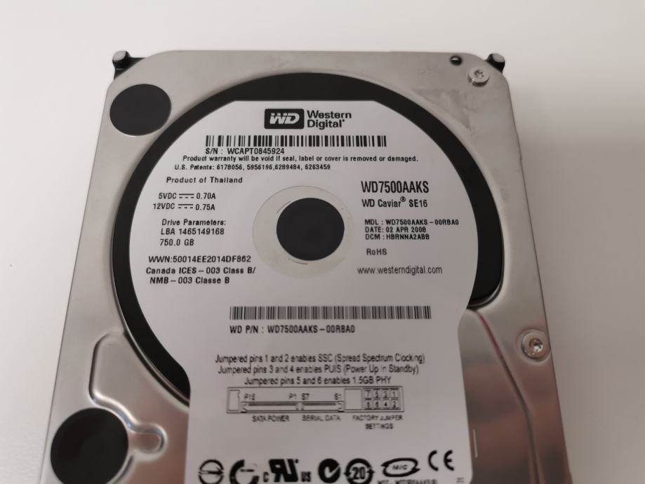 Prodam disk WD 750GB. Uporabljen je bil kot disk za arhiv. Deluje brezhibno. 100% testiran.