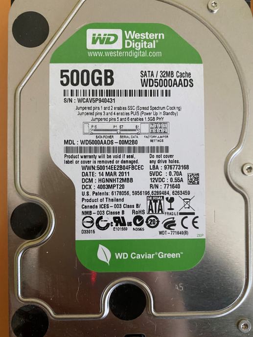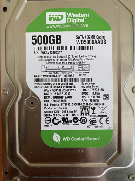 Model: Western Digital Caviar Green WD500AADS