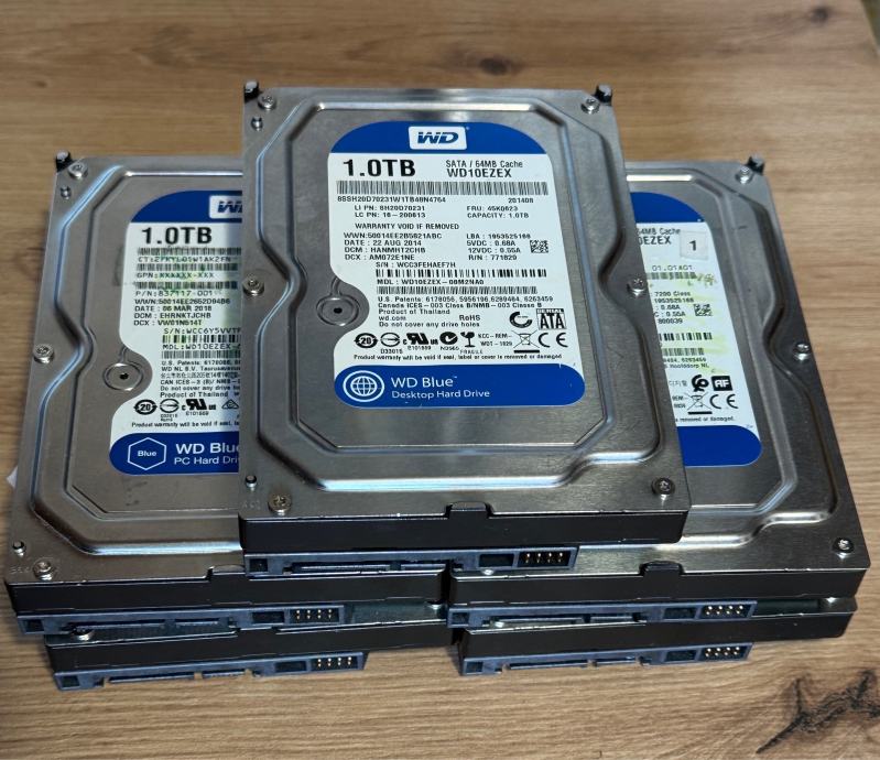 Na prodaj 5 rabljenih trdih diskov WD BLUE WD10EZEX s kapaciteto 1 TB. Diski so SATA3 izvedbe, primerni za shranjevanje podatkov v racunalniku, NAS , Synology, Qnap.