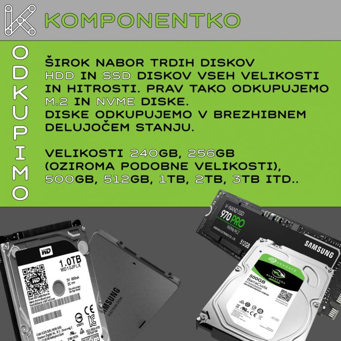 ODKUPIMO - TRDE DISKE, SSD, M.2, NVM.E - NVME Diske za shranjevanje po