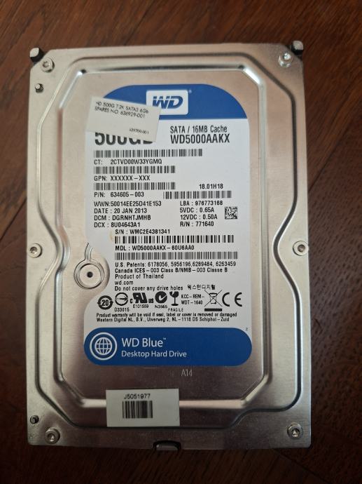 Prodam vgradnu trdi disk kapacitete 500 GB.