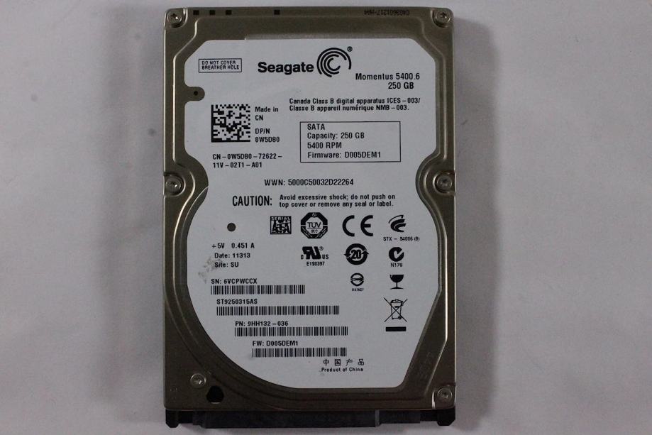 Trdi disk 2,5" Seagate Momentus 250GB ST9250315AS. Brezhiben.