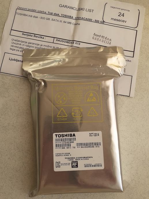 -TOSHIBA 500GB, DT01ACA050, velikost 3,5", nerabljen - 13€