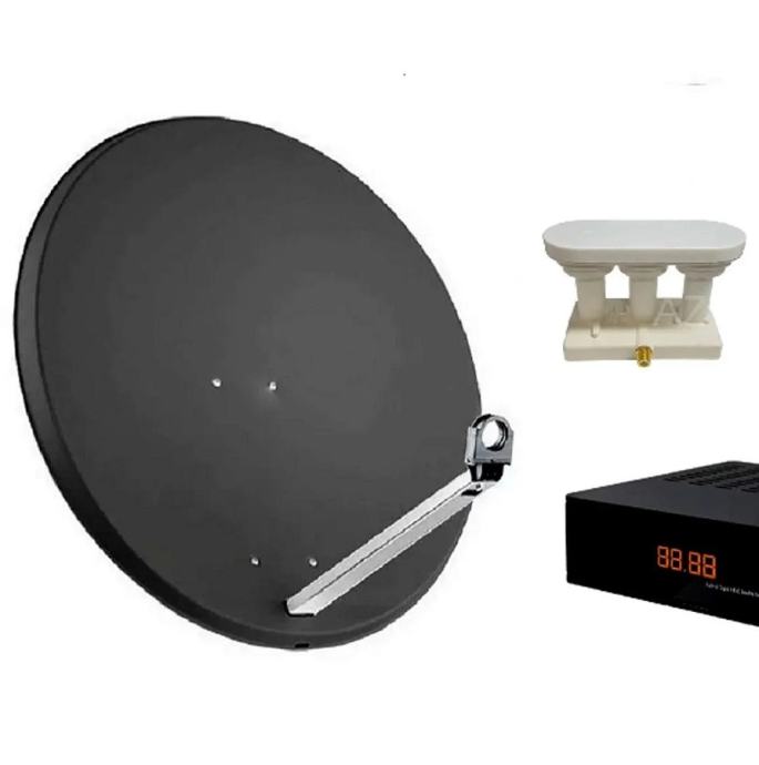 Prodam KOMPLET: "SATELITSKI KROŽNIK-ANTENO offset 96cm", "LNB z 3 (tri) glave", ali 2 (dve) glavi z dva izhoda. "L" KONZOLO" za pritrditev sat antene na zid, " HD SAT SPREJEMNIK", "KOAKSIALNI kabel", in "dva "F" konektorja za kabel". SAT ANTENA je usmerjena na 3. satelitske pozicije= : z tri glavi: - ASTRA 19°E+HOTBIRD 13°E,+EUTELSAT 16E. - Z dve glavi - ASTRA 19°E +EUTELSAT 16E.