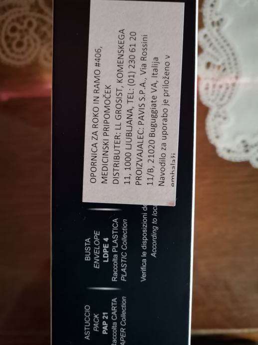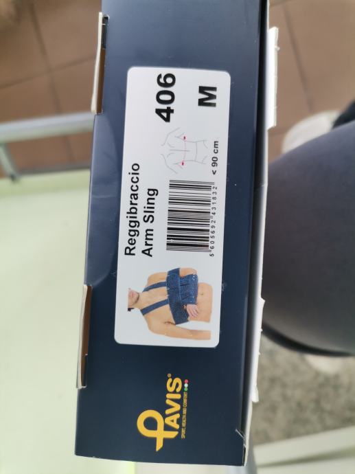 Prodam skoraj novo opornico za roko, komolec, ramo (rabljeno manj kot dva tedna), znamka Pavis. Lahko se jo uporablja kot oprt za prizadeto roko, daš roko počivat, ko to rabiš; lahko pa se roko še bolj fiksira z dodatnim trakom okrog prsnega koša in roke, da se ne premika. Uporabno za levo in desno roko, odprtina je enaka iz obeh strani. Nošenje je enostavno na prsnem košu, ni moteče, tudi če opornice ne uporabljaš, ne moti. Velikost M (za obseg prsnega koša < od 90 cm (pri ženskah se meri pod dojkami).