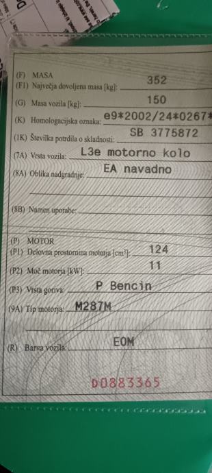 V odličnem stanju, narejen veliki servis, nove pnevmatike mischelin, dva vizirja, registriran v maju, v glavnem samo za vozit.