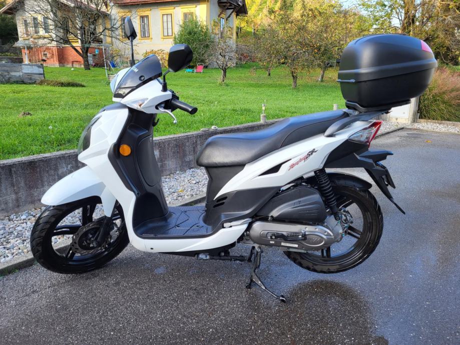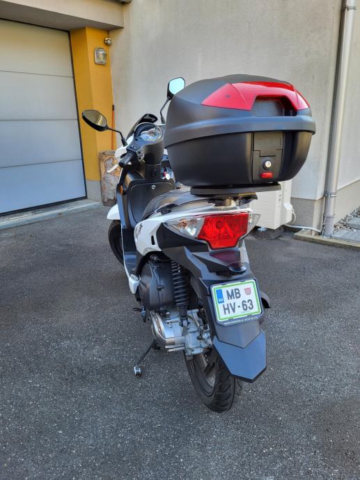 Odlično ohranjen, garažiran. Servisna knjiga, slovensko poreklo in 1. lastnik. Skuter ni bil nikoli karamboliran in je nepoškodovan. Narejen servis in tehnični pregled pri 7515 km. Veljavnost tehničnega pregleda do 25. 10. 2023. V ceni je vključen tudi prtljažni kovček 30l..