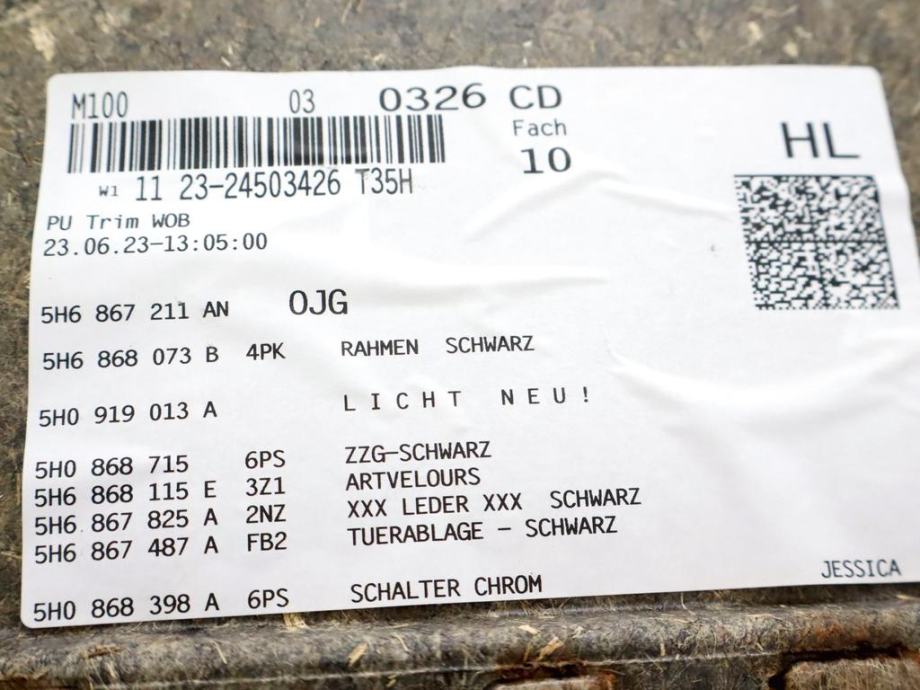 OBLOGA ZADNJIH VRAT OEM N. PNPSPVWGOLFVIIICD1MK8BR5P ORIGINAL REZERVNI