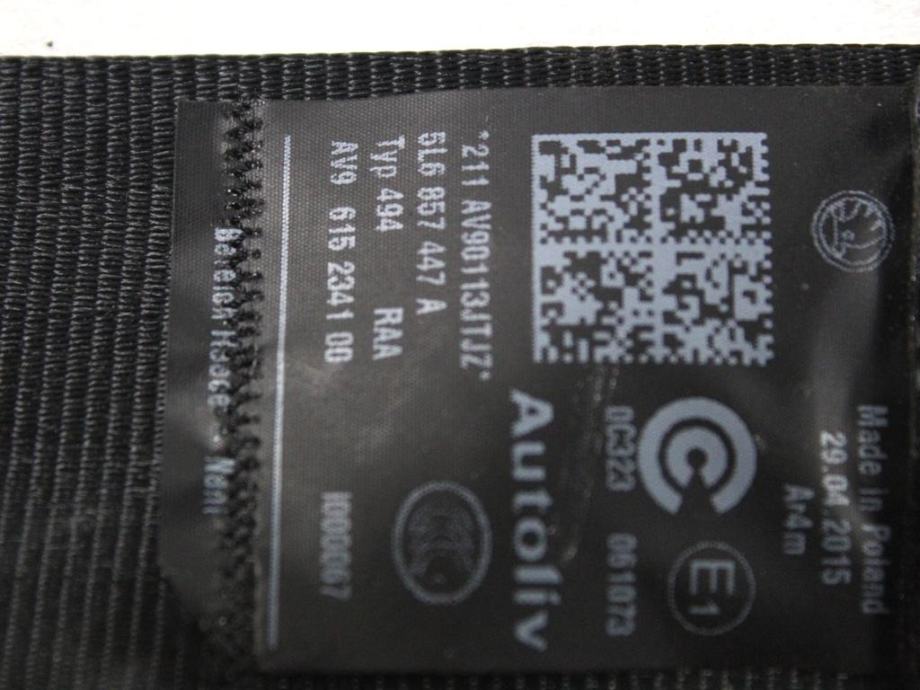VARNOSTNI PAS OEM N. 5L6857447A ORIGINAL REZERVNI DEL SKODA YETI 5L R (2013 - 2017)1.6 LETNIK 2015