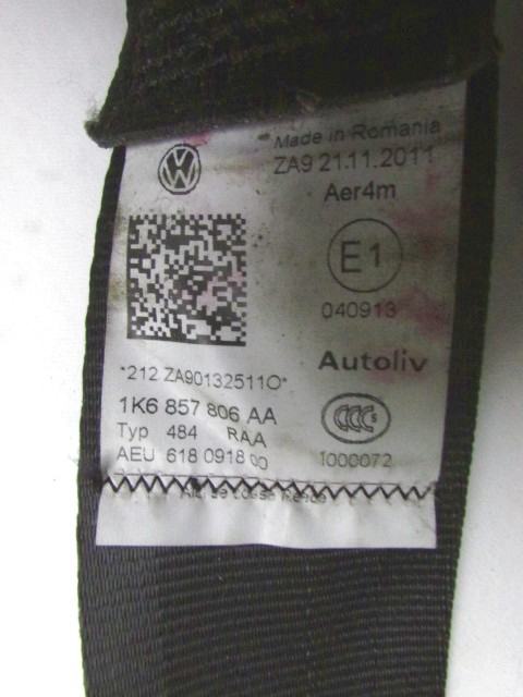 VARNOSTNI PAS OEM N. 1K6857806AA ORIGINAL REZERVNI DEL VOLKSWAGEN GOLF VI 5K1 517 AJ5 MK6 (2008-2012) BENZINA LETNIK 2012